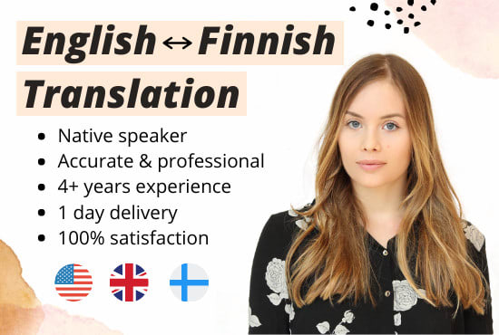 I will translate a maximum of 400 words from English to Finnish or Finnish to English for $5 within 48 hours (and often even within 24 hours at no extra cost)!