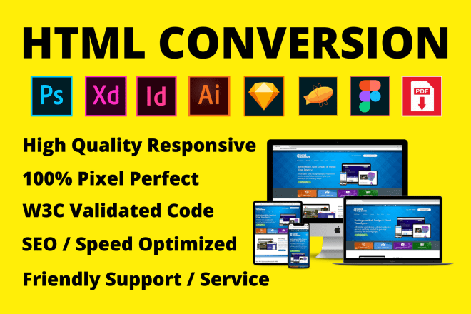 Convert PSD, Figma, Zeplin, Sketch to HTML, CSS3, Responsive, Bootstrap4 and jQuery